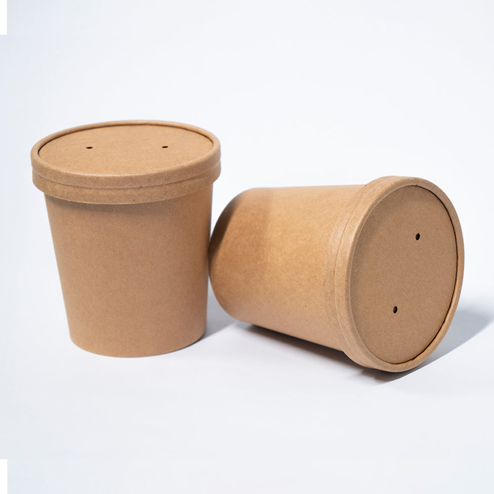Contenedor kraft de 16 oz con tapa de cartón compostable, ideal para servir alimentos calientes o fríos. Fabricado con materiales renovables, este envase es resistente, seguro para contacto con alimentos y perfecto para delivery, take-out o eventos sostenibles. Su diseño natural transmite autenticidad y compromiso ambiental, alineado con marcas que buscan reducir su huella ecológica. Disponible en Medellín y toda Colombia a través de Ecofolia.co, tu aliado en empaques responsables. - Contenedor kraft 12 oz