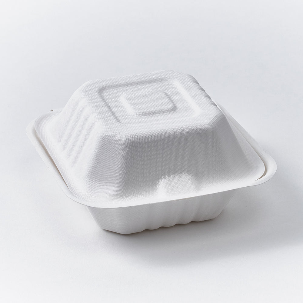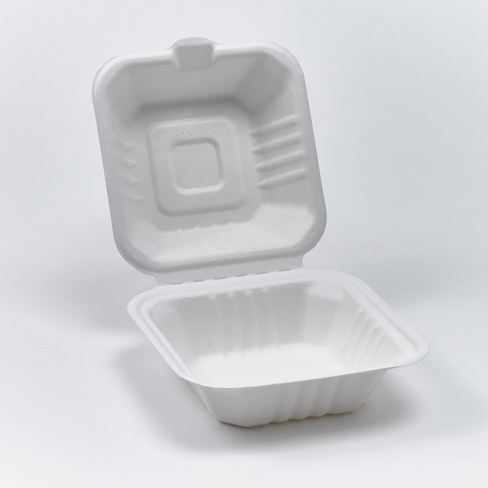 "Caja ecológica elaborada con almidón de maíz. Diseñada para conservar hamburguesas, arepas rellenas o sándwiches sin alterar su sabor ni textura. Su estructura resistente soporta alimentos calientes y grasosos, y es apta para contacto directo con alimentos. Compostable en condiciones industriales. - “Ideal para hamburguesas y arepas”