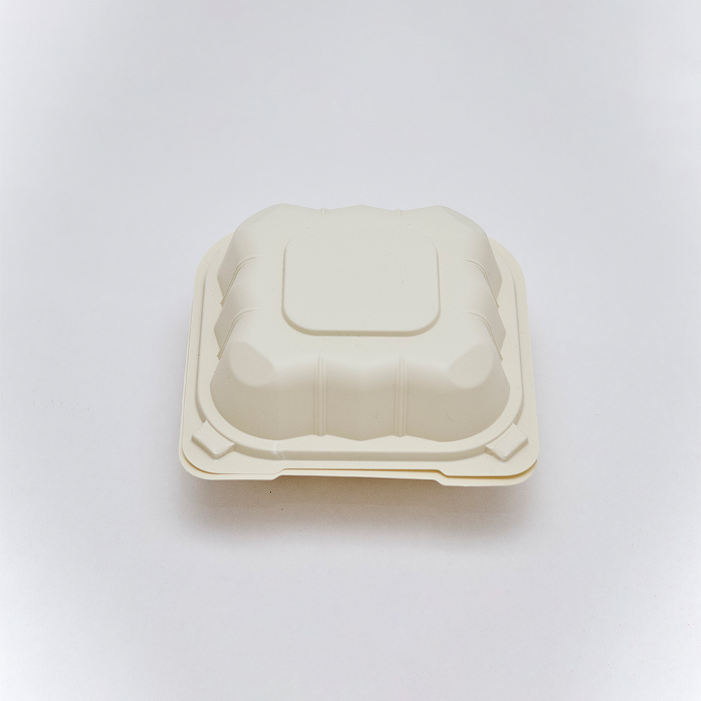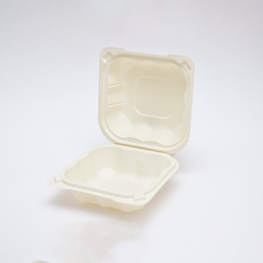 Caja ecológica elaborada con almidón de maíz. Diseñada para conservar hamburguesas, arepas rellenas o sándwiches sin alterar su sabor ni textura. Su estructura resistente soporta alimentos calientes y grasosos, y es apta para contacto directo con alimentos. Compostable en condiciones industriales. - “Ideal para hamburguesas y arepas”