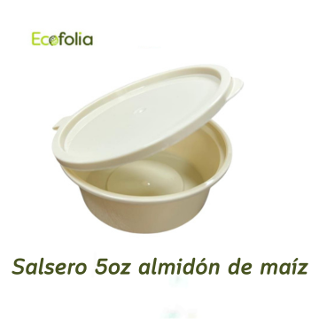 Contenedor ecológico pequeño, ideal para porciones individuales de salsas, aderezos o miel. Fabricado de almidón de maíz y polipropileno con aditivo de descomposición acelerada. Incluye tapa del mismo material. No altera el sabor y es apto para contacto directo con alimentos. - “Incluye tapa compostable”